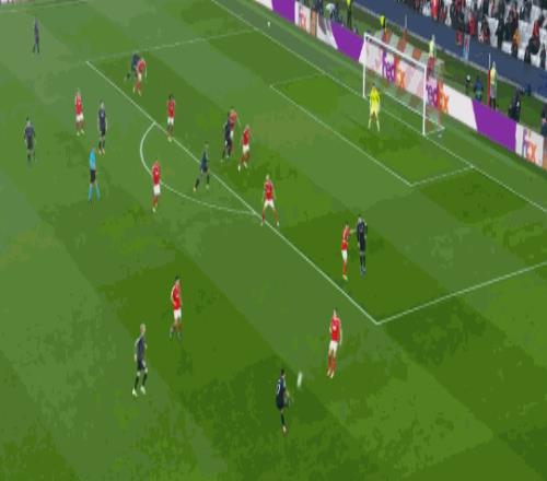 比賽一開始,背水一戰(zhàn)的本菲卡眾將迅速進(jìn)入狀態(tài),他們沒有絲毫保守,前場(chǎng)逼搶極具侵略性,蘇達(dá)科夫、普雷斯蒂安尼頻繁在肋部制造混亂。第15分鐘,本菲卡曾獲得點(diǎn)球機(jī)會(huì),所幸VAR介入,取消判罰;皇馬逃過一劫。