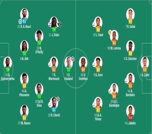 曼城出場(chǎng)陣容:25-多納魯馬、6-阿克、21-努里、27-努內(nèi)斯、45-胡桑諾夫、33-奧賴?yán)?0-B席、10-謝爾基(82’14-尼科·岡薩雷斯)、7-馬爾穆什(67’4-賴因德斯)、9-哈蘭德、11-多庫(kù)(37’47-福登)